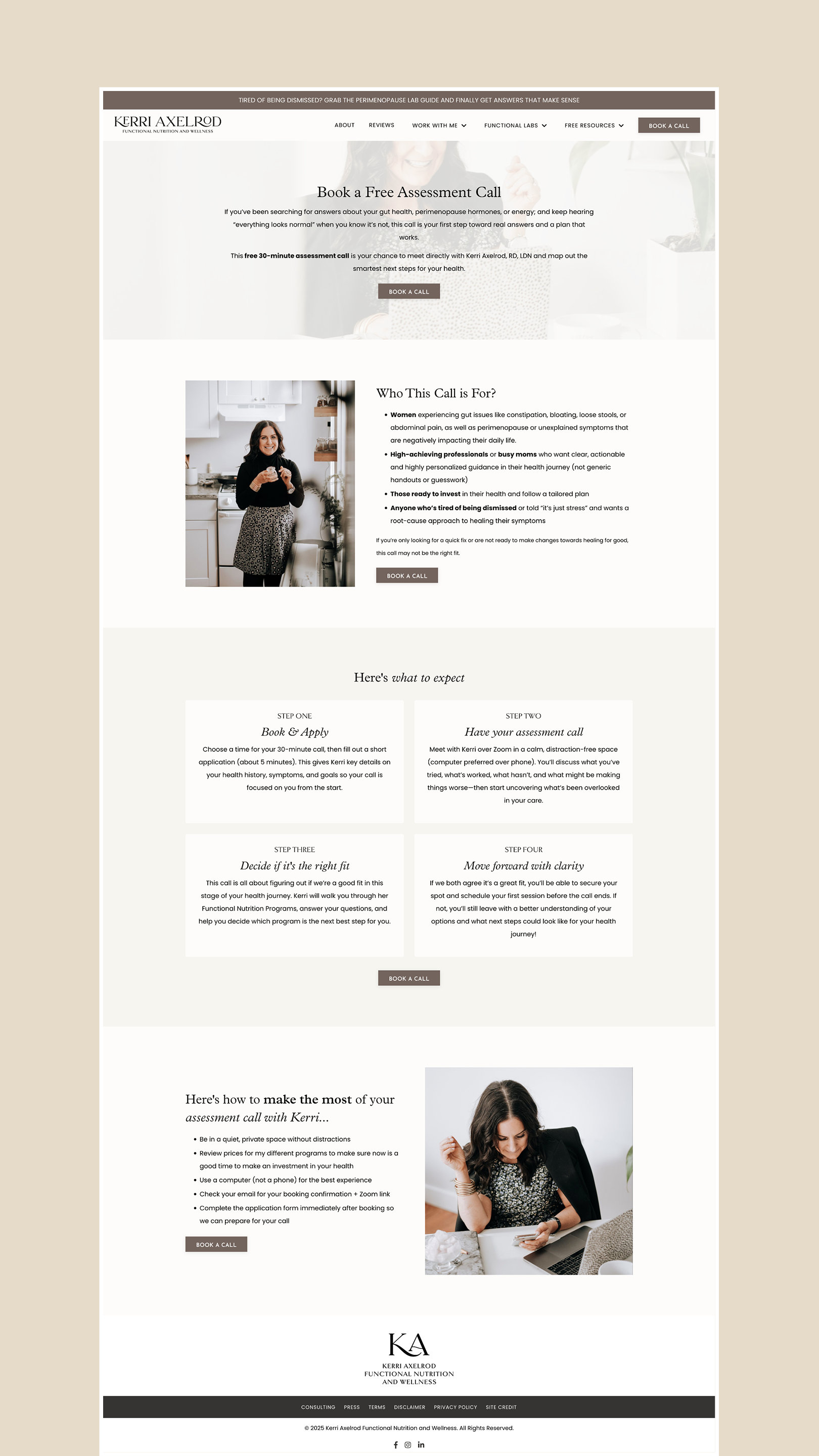 Branding and Kajabi Web Design for Functional Nutrition Dietitian Kerri Axelrod